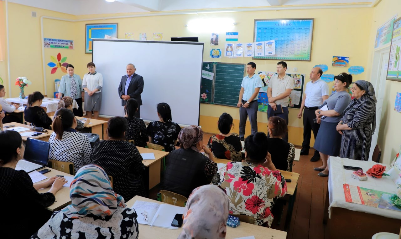 Шунингдек, туман ҳокими устозлар билан суҳбатлашиб, очиқ мулоқот олиб борди ва ёшларнинг билимли, тарбияли бўлиб етишишида аввало боланинг қўлига илк қалам тутқазиб, ўқиш ва ёзишни ўргатадиган бошланғич таълим устозларининг муҳим ўрни борлигини таъкидлаб, ушбу ўқув машғулотлари албатта, келгусида ўз самарасини кўрсатиши борасида гапириб ўтди.