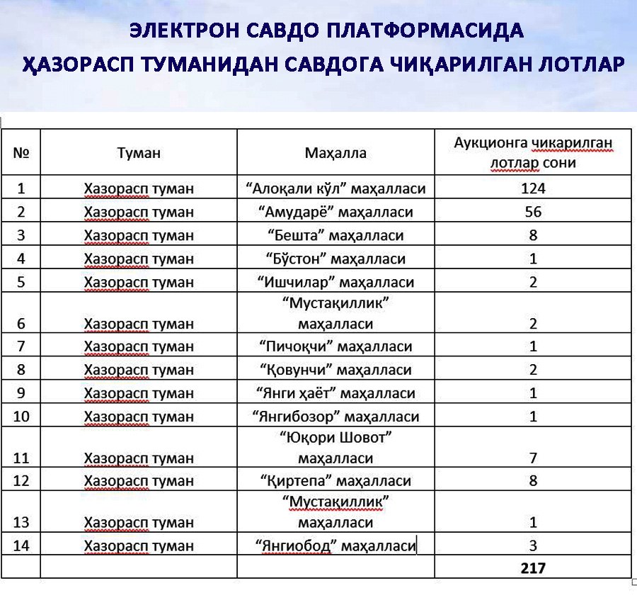 Мурожаат: Ҳазорасп туман ҳокими Ўктам Машарипов иштирокида.